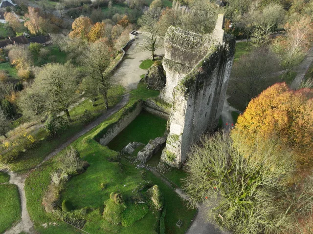 Bocage Destination Domfront Bagnoles Cite Medievale Vue AerienneDomfront conserve précieusement les traces de son passé glorieux. Ses ruelles pavées bordées de maisons à colombages et ses remparts vous invitent à un voyage dans le temps, au cœur du Moyen Âge. L’Église Saint-Julien, qui mêle styles roman et gothique, est l’un des joyaux emblématiques de cette cité exceptionnelle.
